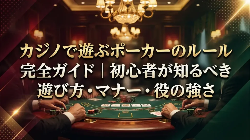 カジノポーカーの基本ルール・役の強さ・マナーを初心者向けに解説。テーブルの選び方からベットの流れまで、現地で迷わないための完全ガイド。
